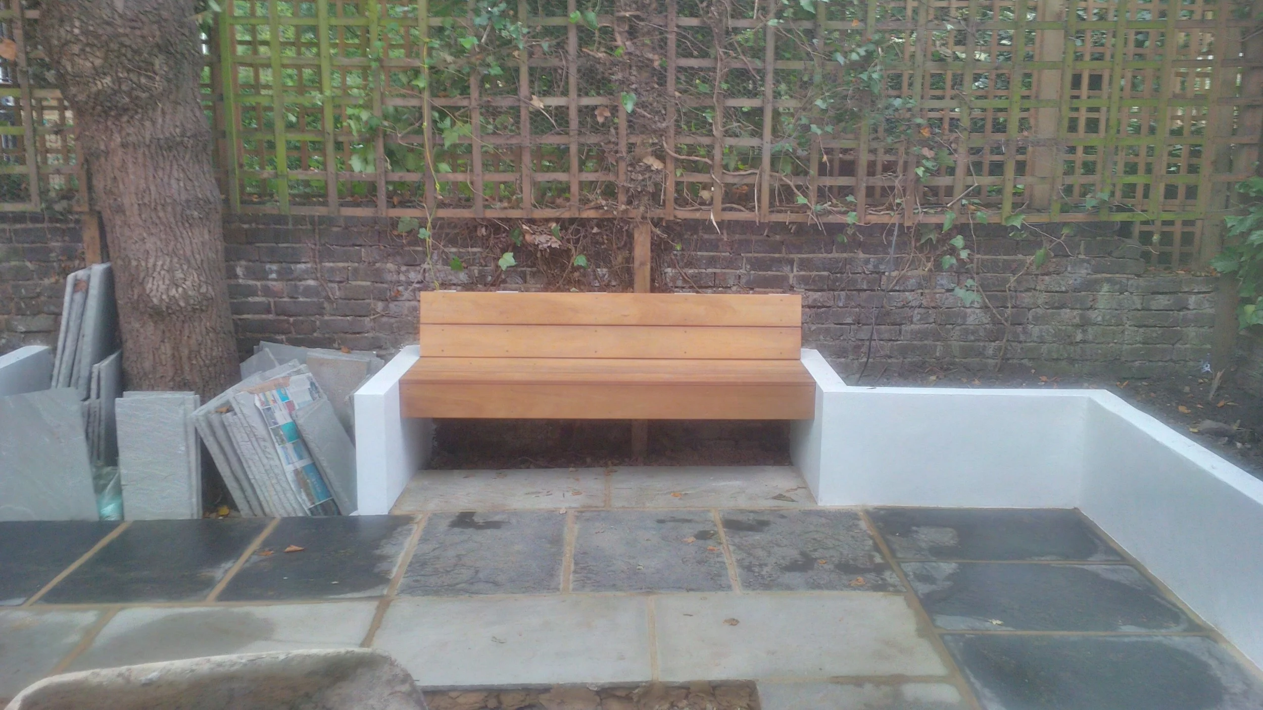 Other features of the garden included three benches, an upper decking area with a bespoke made water feature, using the remaining tiles from the new stairs and a lower decked area with one of the three custom built benches.